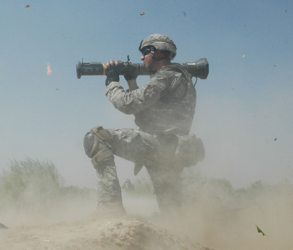 A soldier from the 1st Battalion, 38th Infantry Regiment, 4th Stryker Brigade Combat Team, 2nd Infantry Division, destroys an insurgent cave containing a cache, with an AT-4 during Operation Rock Hammer, Sept. 7. Rock Hammer, conducted in farmland and palm groves on the Diyala River, resulted in the discovery of 11 al-Qaida in Iraq weapons caches. Photo by 1st Lt. Richard Ybarra
